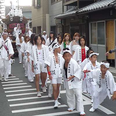 平成21年7月18日、東成区八王子神社の中本地車夏祭り曳行に参加