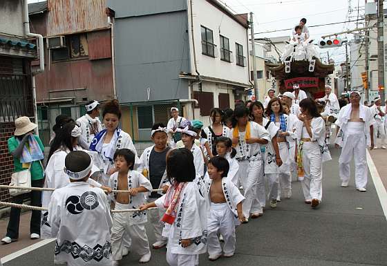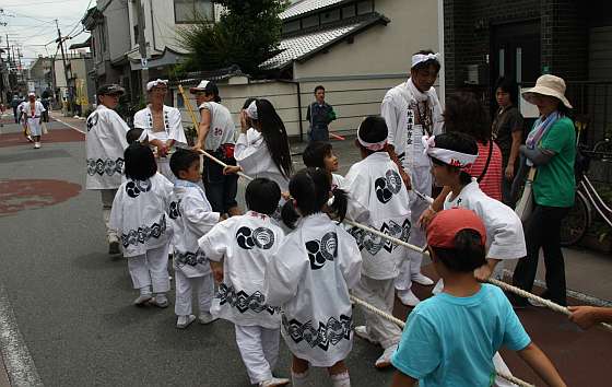 平成21年7月19日、東成区八王子神社の中本地車夏祭り曳行に参加