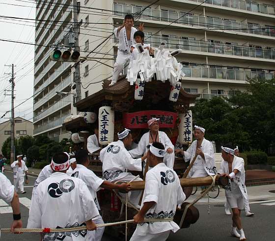 では、東成区八王子神社の中本地車夏祭り曳行画像その6:午後曳行1をご覧下さい。