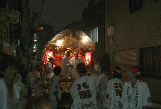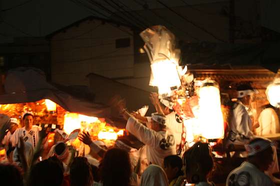 では、東成区八王子神社の中本地車夏祭り曳行画像その9:夜間曳行2をご覧下さい。