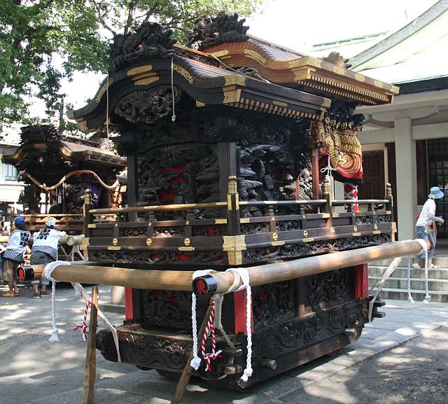 野里住吉神社境内の拝殿前に据え置かれた野里東之町地車。