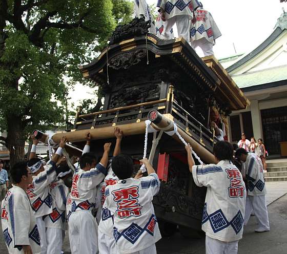 平成22年度地車新調予定の野里東之町で、現在の地車の昇魂式とお別れ曳行が