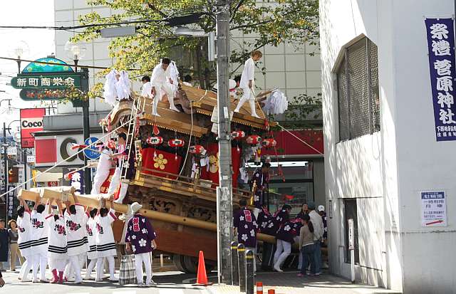 押廻地車が恩地川を渡ってきました。