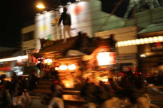 そして午後8時過ぎ、鴫野南之町地車が登場しました。