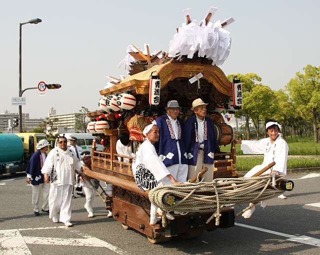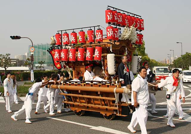 鶴見緑地内を曳行する浜地車