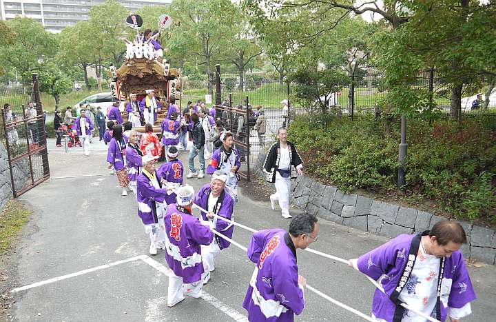 鶴見緑地公園へ入ってきた鶴見東之町地車。