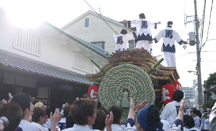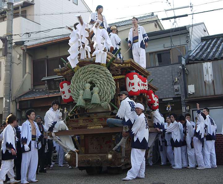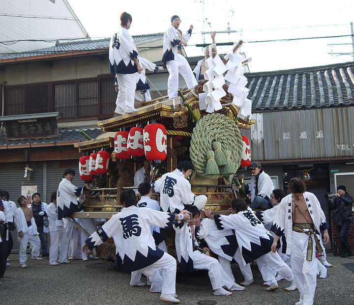 では、杭全神社注連縄奉納での馬場町地車画像その2をご覧下さい。