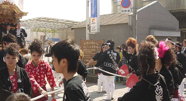 青年団が地車に乗り込み、まもなく曳行出発のようです。