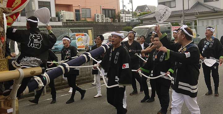 午後2時40分頃、鶯地車が村の中で試験曳きしていました。