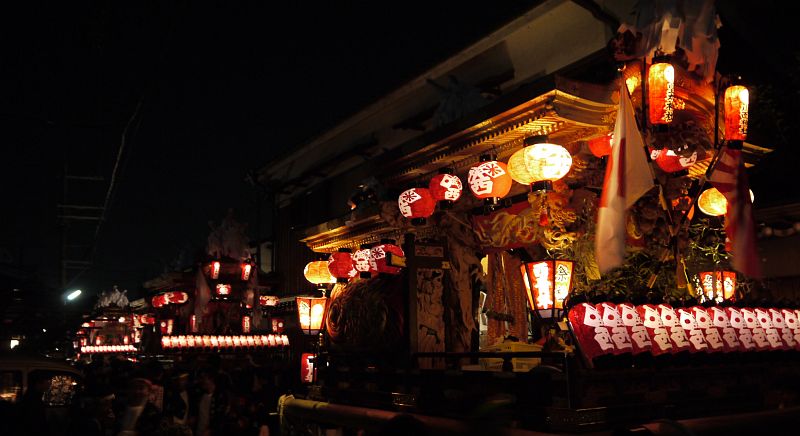 午後7時前、休憩中の3台の地車。綺麗ですね。