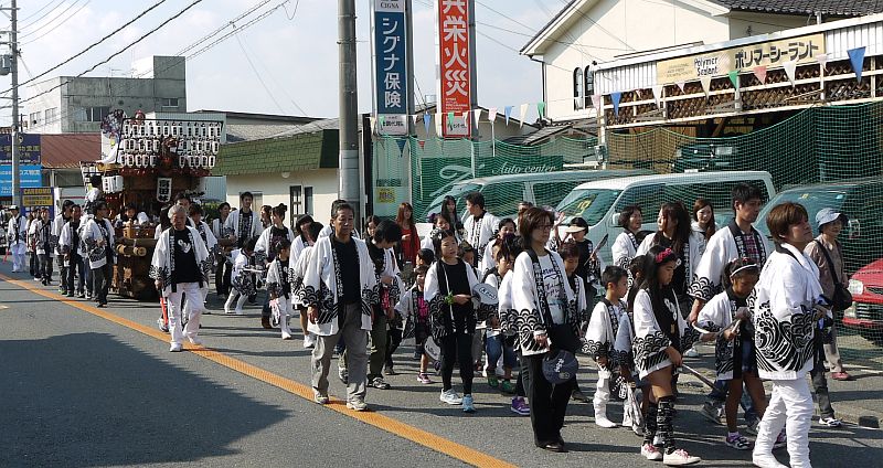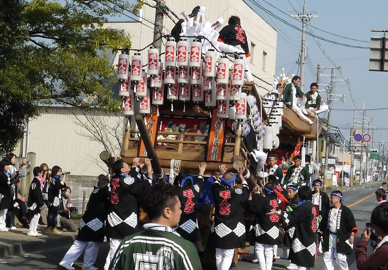 午前9時40分、南方向から毛人谷地車がやってきました。