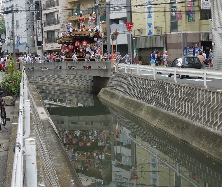 若戎地車と和田宮地車が疎水に架かる橋を渡ります。