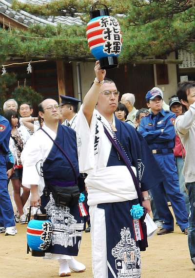 総指揮者が提灯を高く差し上げ、宮出出発OKです。