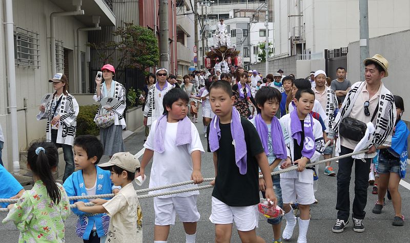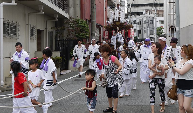 東住吉区杭全1丁目を曳行中です。