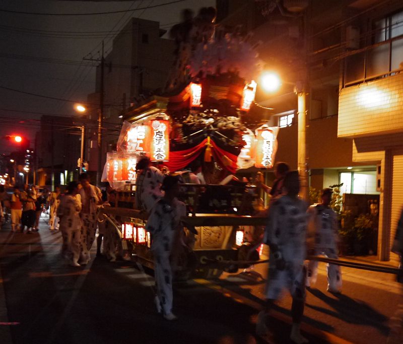 8月1日 午後8時45分頃 平野川に架かる新今里橋を渡る片江地車