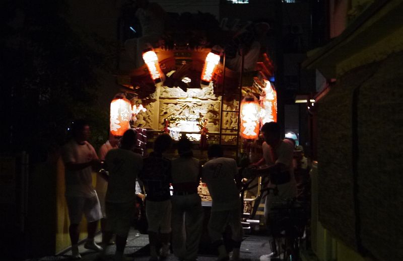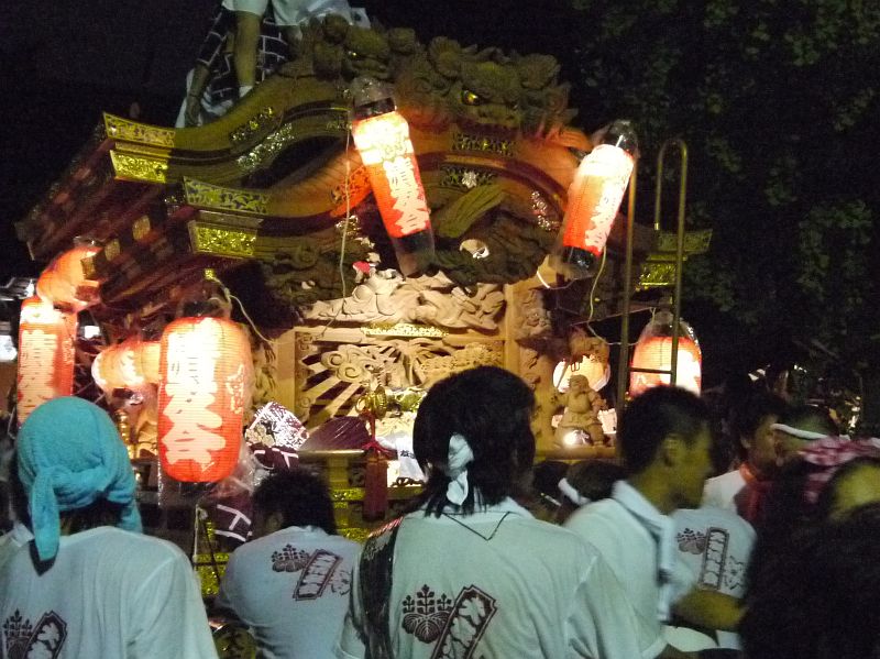 大友地車は清見原神社境内に小屋があるので、2日間とも夜10時頃に宮入します。