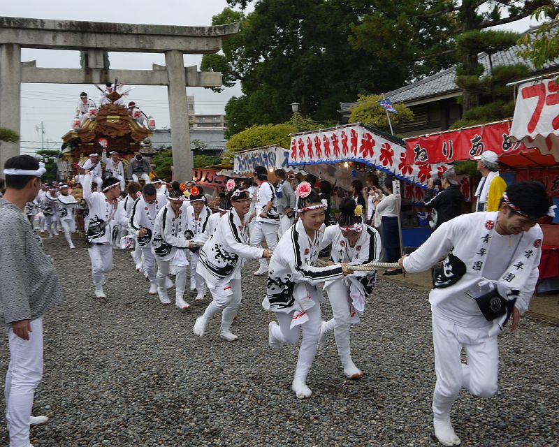 誉田八幡宮境内へ入ってきた王水町地車は境内中央にある鳥居前まで