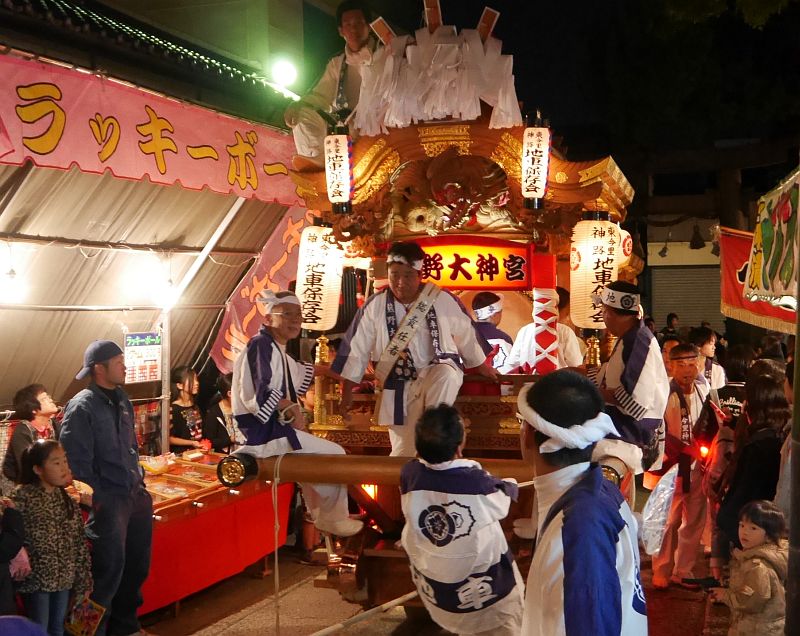 午後7時前、神社北側の村中を進む東今里神路地車を見つけました。