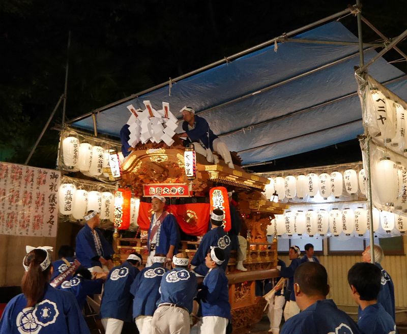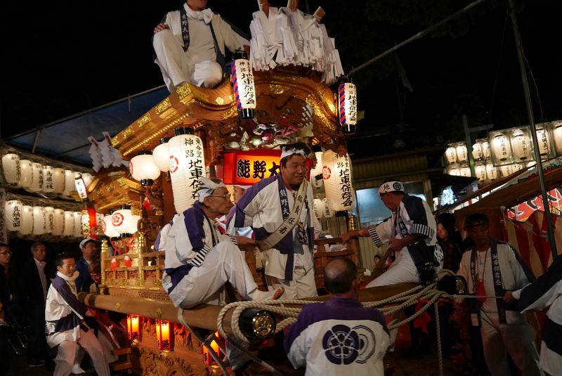 午後7時過ぎ、曳き綱が境内へ入ってきました。