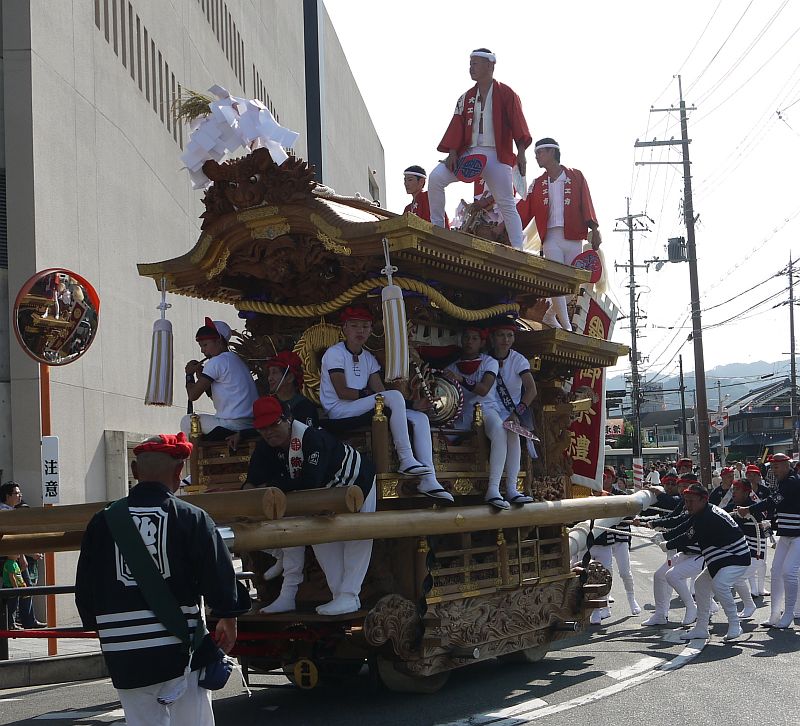 先頭の片添地車は通り過ぎた後で、