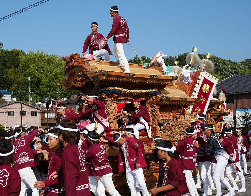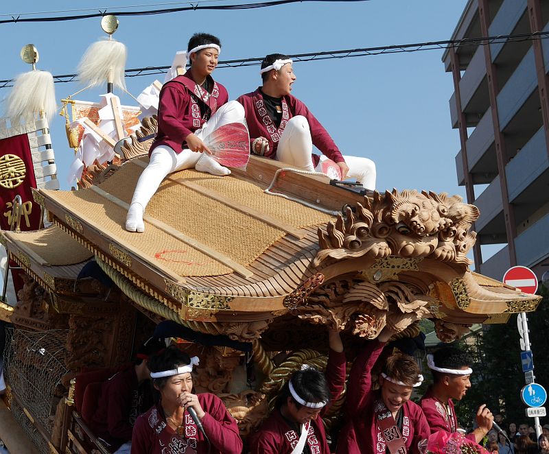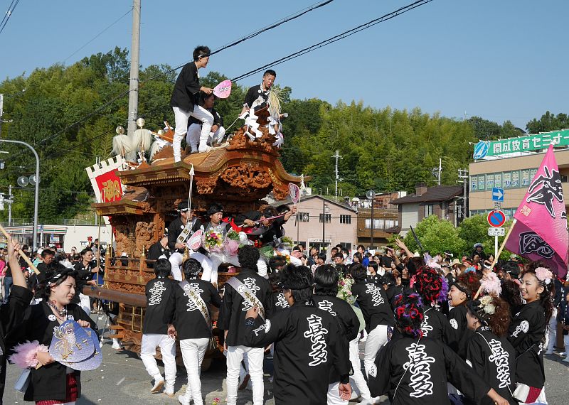 地車の周りではお囃子に合わせて踊りながらの声援です。