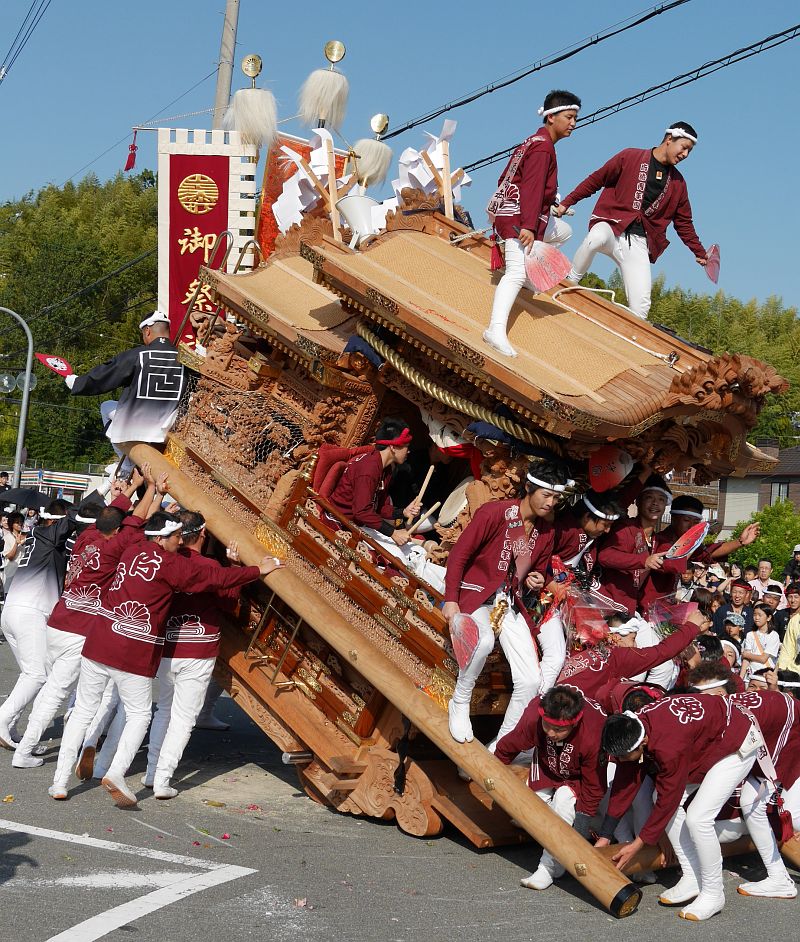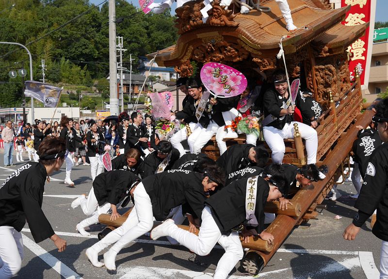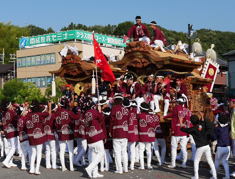 片添地車も後ろを担ぎ上げての練り廻しです。