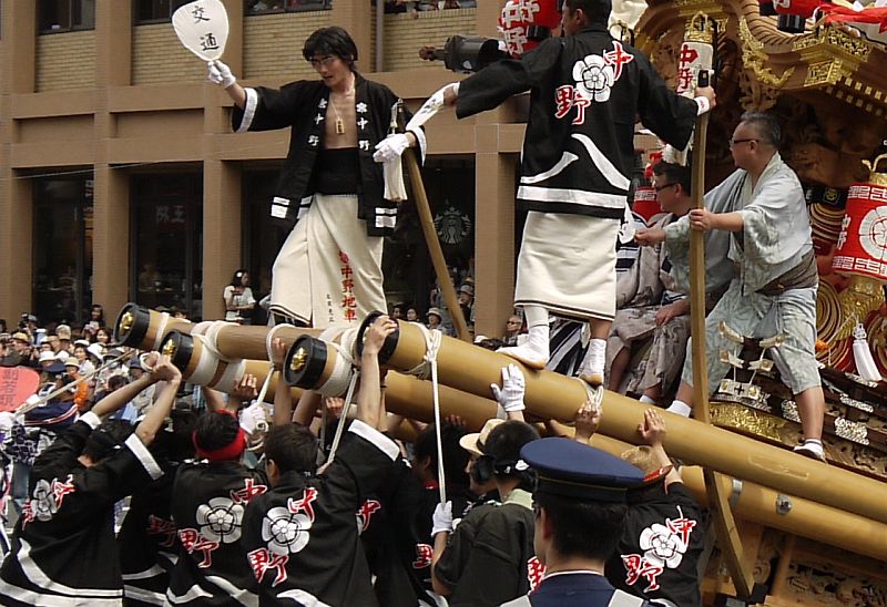 中野地車が前を担ぎ上げている横を通って東側へ向かう森地車