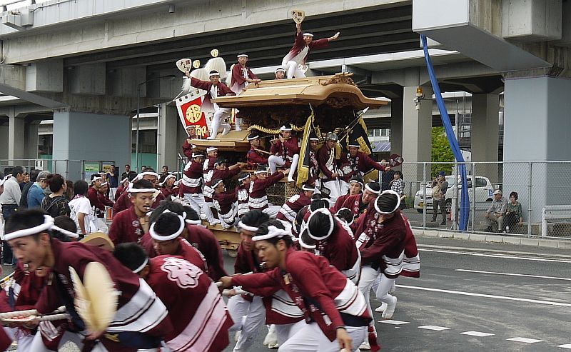 泉北1号線の高橋中交差点付近で美福地区のパレードを見たあと、
