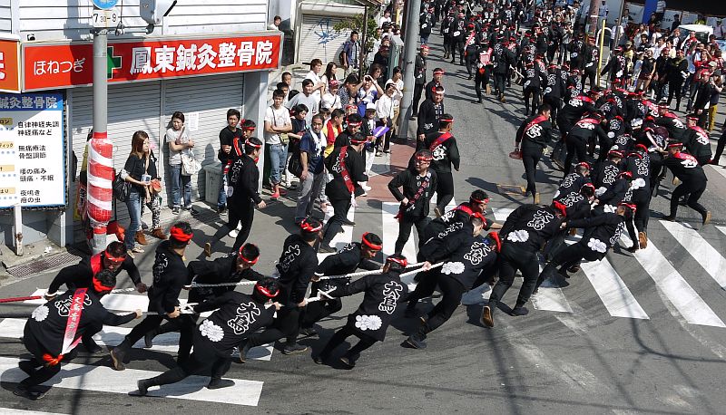 午後1時、野田・北王子・大鳥・長承寺の4つの纏が交差点に揃いました。