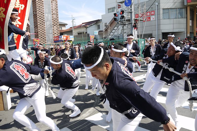 続いて長承寺地車の曳き綱が商店街から出てきました。