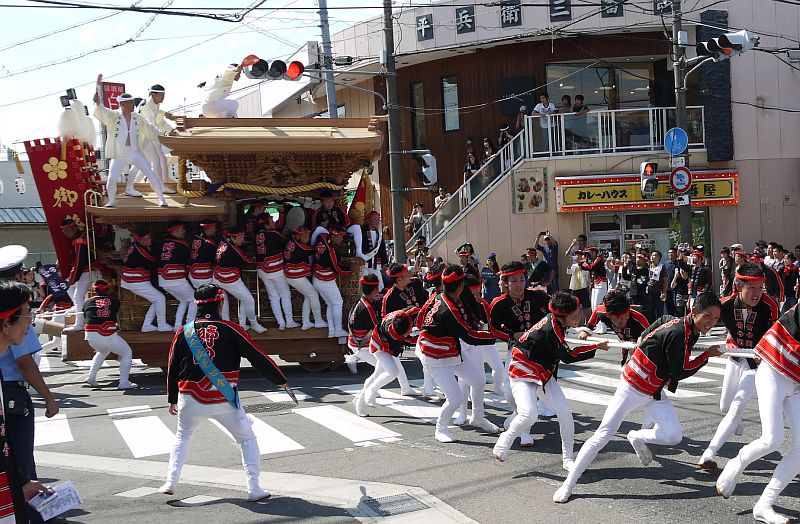 もう一度商店街出口へ向かうと、周回してきた野田地車が戻ってきました。