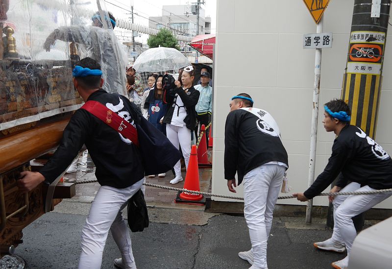 4台目鴫野西之町地車がアーケード出口付近まで来ています。