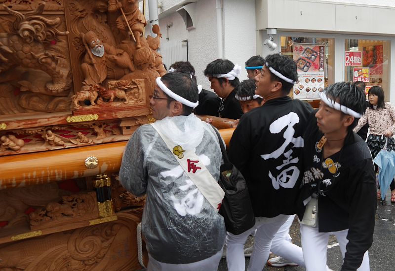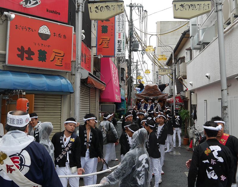 南鴫野商店街アーケードの中を進む鴫野中之町地車
