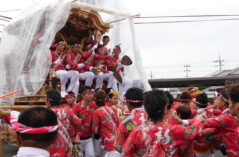 5台の地車が通り過ぎ、新堂地車のお囃子が始まりました。