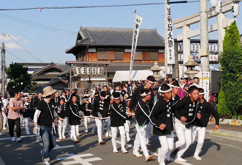 聖神社鳥居を背にして地車の正面から撮影したあとも、鳥居付近で撮影を続けました。
