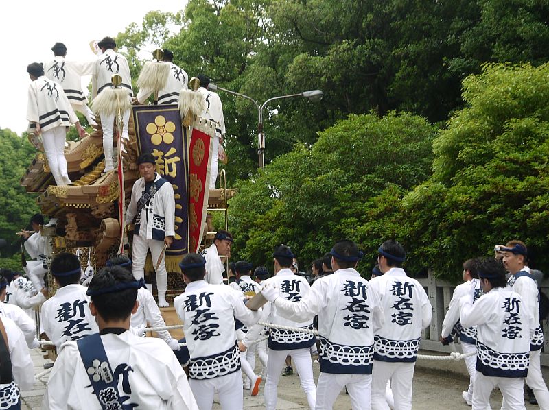 お囃子を聞きながら、参道を進む新在家地車を追いかけました。