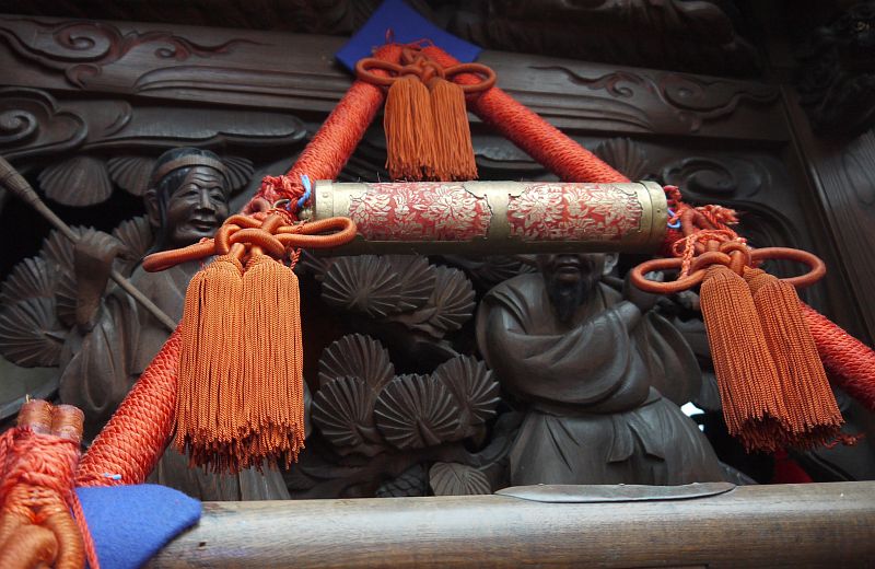 午後3時過ぎ、西奥町地車は高浜神社境内の小屋前で練り廻ししていました。