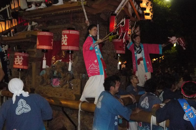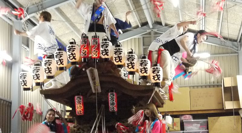 地車の上も前も、そして小屋の前も大盛り上がりです。