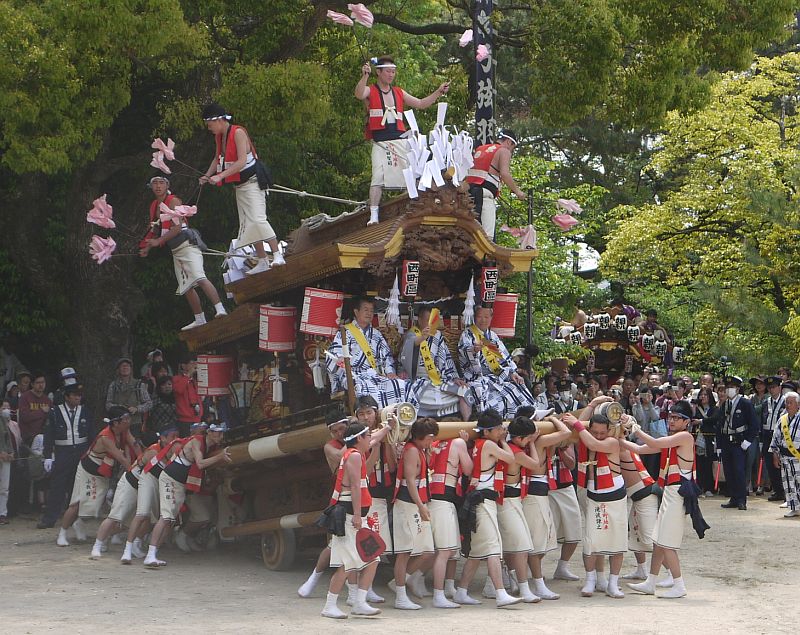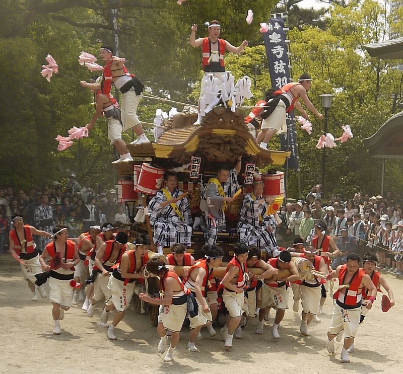 5月4日、本宮の午前10時半から行われる弓弦羽神社地車宮入。