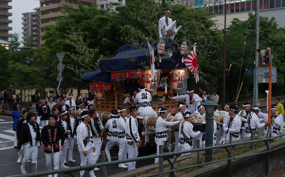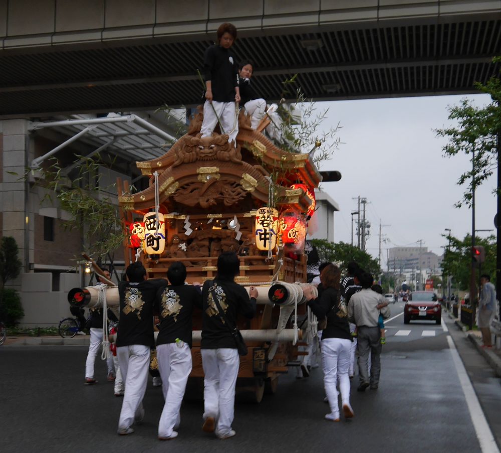 続いて西町地車も庄下川の川べりに向かって来ました。