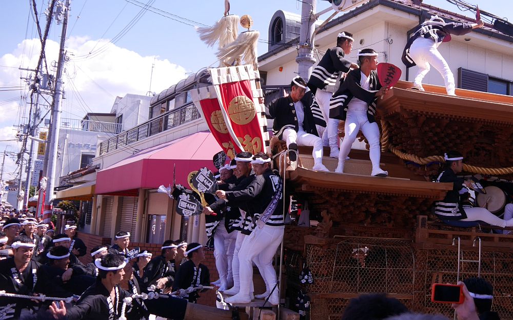 では、岸和田市の春木だんじり祭り本部前パレード画像その1をご覧下さい。