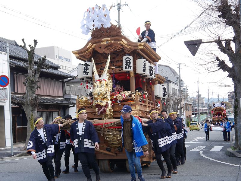 平成26年4月6日、奈良県橿原市の今井町地車パレード曳行を見に行ってきました。 橿原神宮の春の神武祭 参道パレードに今井町地車が出ると聞き、早速見に行ってきました。 参道パレード終点付近でパレード曳行の姿を少し見ることができたのですが、もっと見ていたかったので 帰路の姿を追いかけることにしました。 では、奈良県橿原市の今井町地車パレード曳行画像その2をご覧下さい。