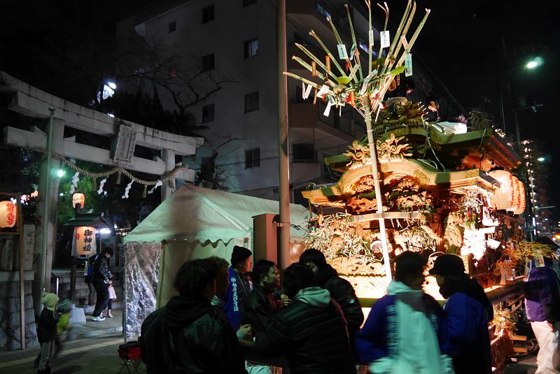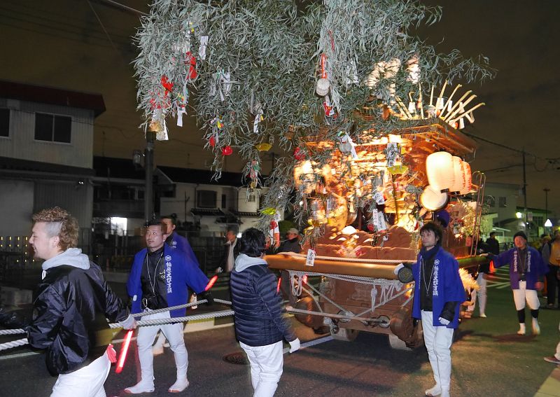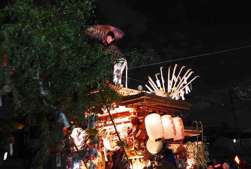 地車の前の大きな笹には吉兆やいろんなお札お守りがつけられていますね。