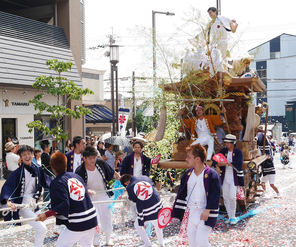 こちらは5台のパレードが終わって駅前ロータリーで待機中の今町地車