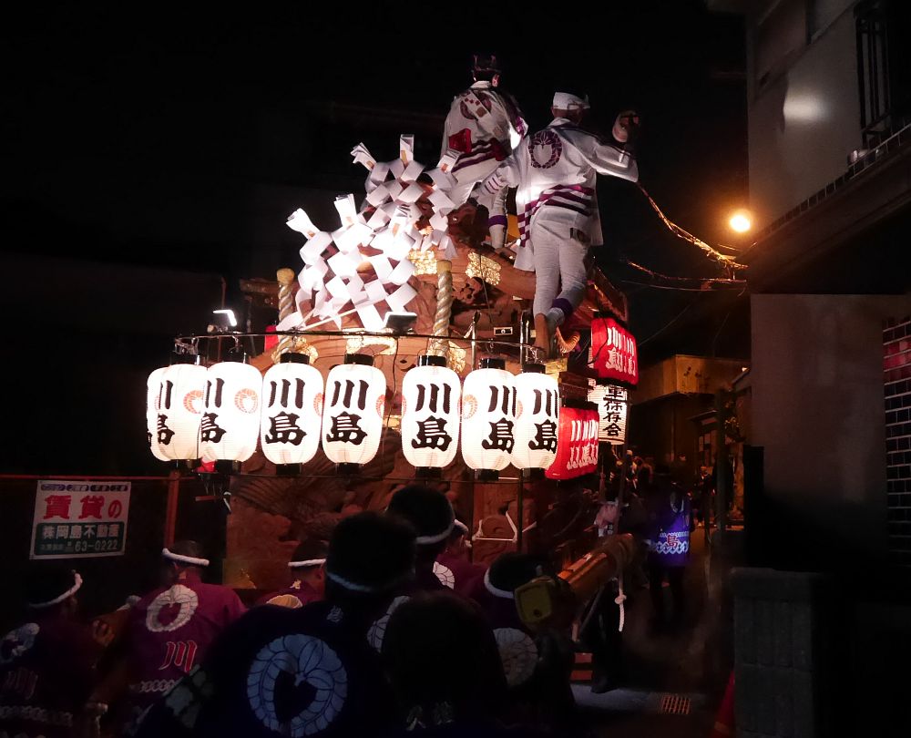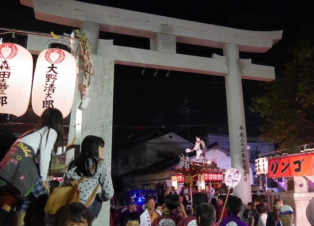 午後7時過ぎ、鳥居の向こうには川島地車の姿が見えてきました。