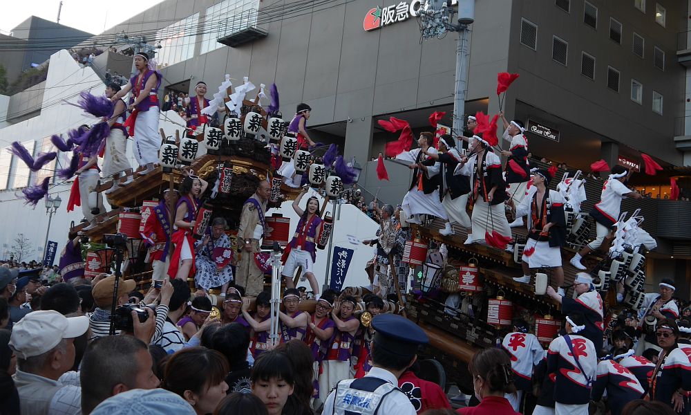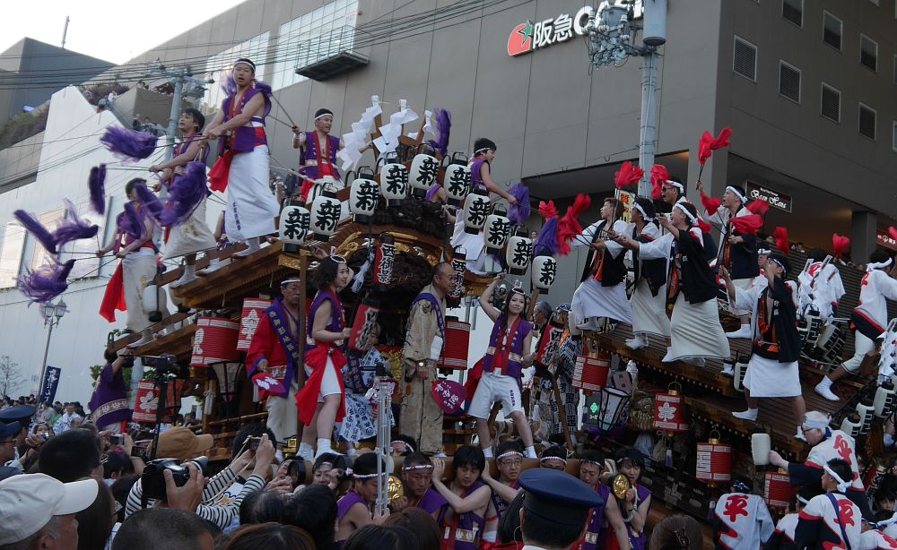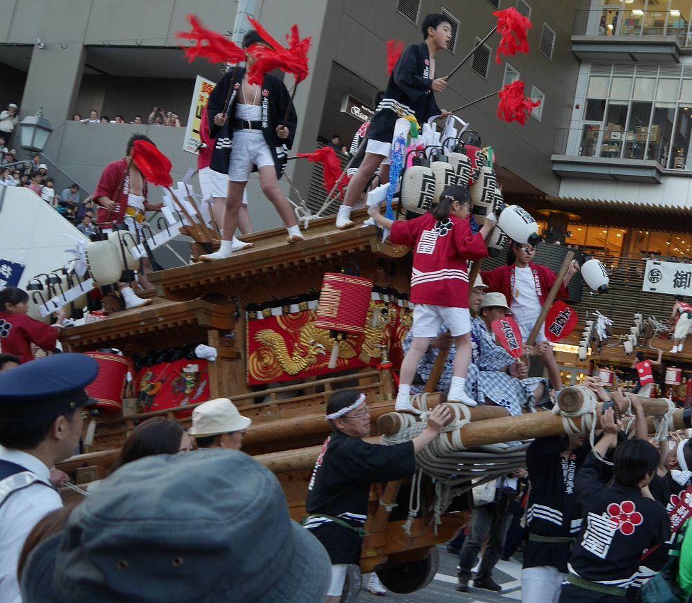 地車を廻していた上石屋地車も前を担ぎ上げたままで中央へ