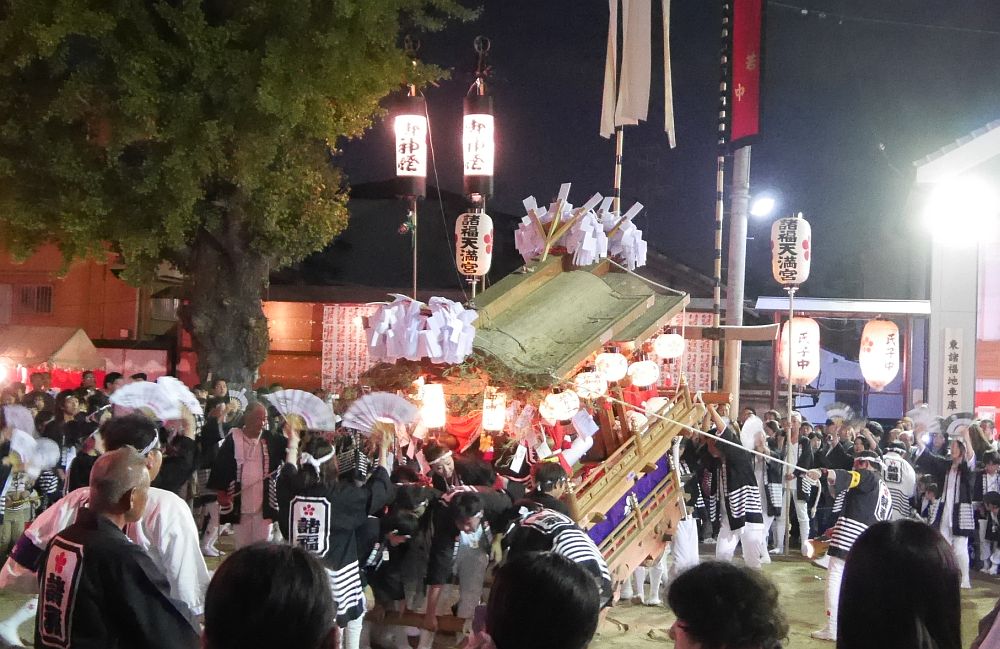 東諸福の小地車と大地車の曳行を見ながら諸福天満宮まで来ました。