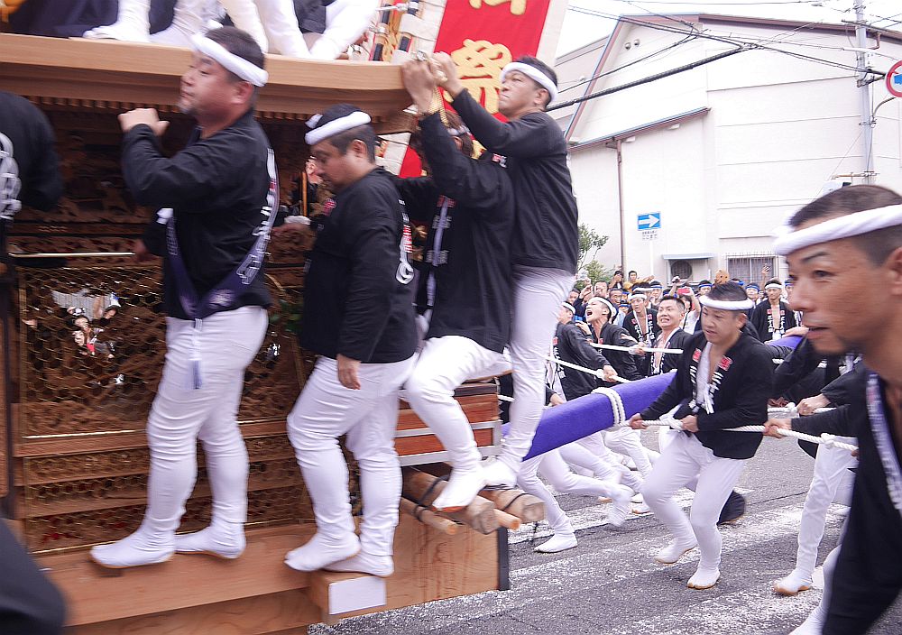 さらに浜の道を南へと紙屋町地車が見えてきました。