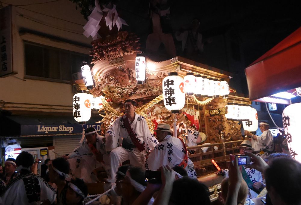 東之町地車は北へ、中神車は東へ下がっていきます。