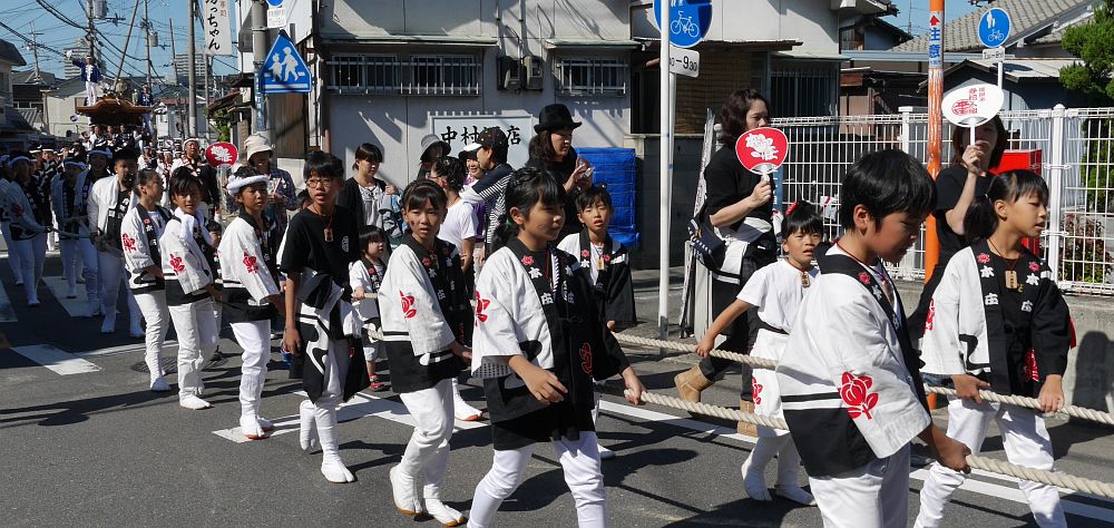 後続2台はお囃子も曳行スタイルも異なり、いろんな祭りが見れますね。